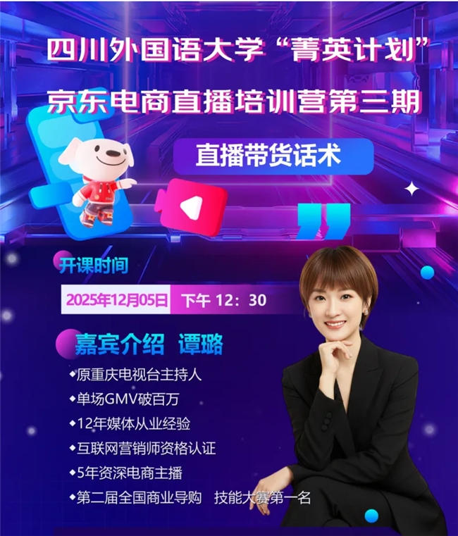 四川外国语大学“菁英计划”京东电商直播培训营(第三期)成功举办