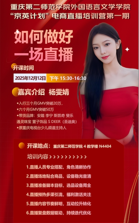 重庆第二师范大学“京英计划”电商直播培训开讲:聚焦话术技巧赋能青年学子